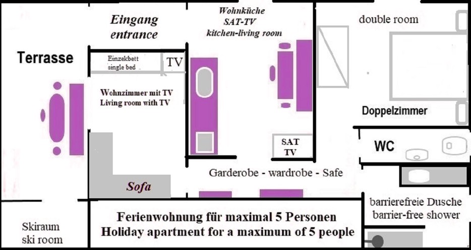 Experience the charm of our inviting 75 m² holiday apartment for 1-3 people. Look forward to a green oasis of well-being with its own lawn, barbecue facilities, and a private terrace, ideal for undisturbed relaxation.